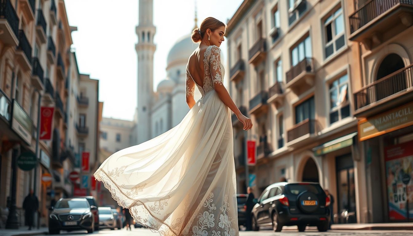 Construction emphasizes structured shoulders and softly flared skirts that glide during the wedding procession and evening dances. Tailors place seams and linings with care so the bride remains comfortable for long ceremonies.